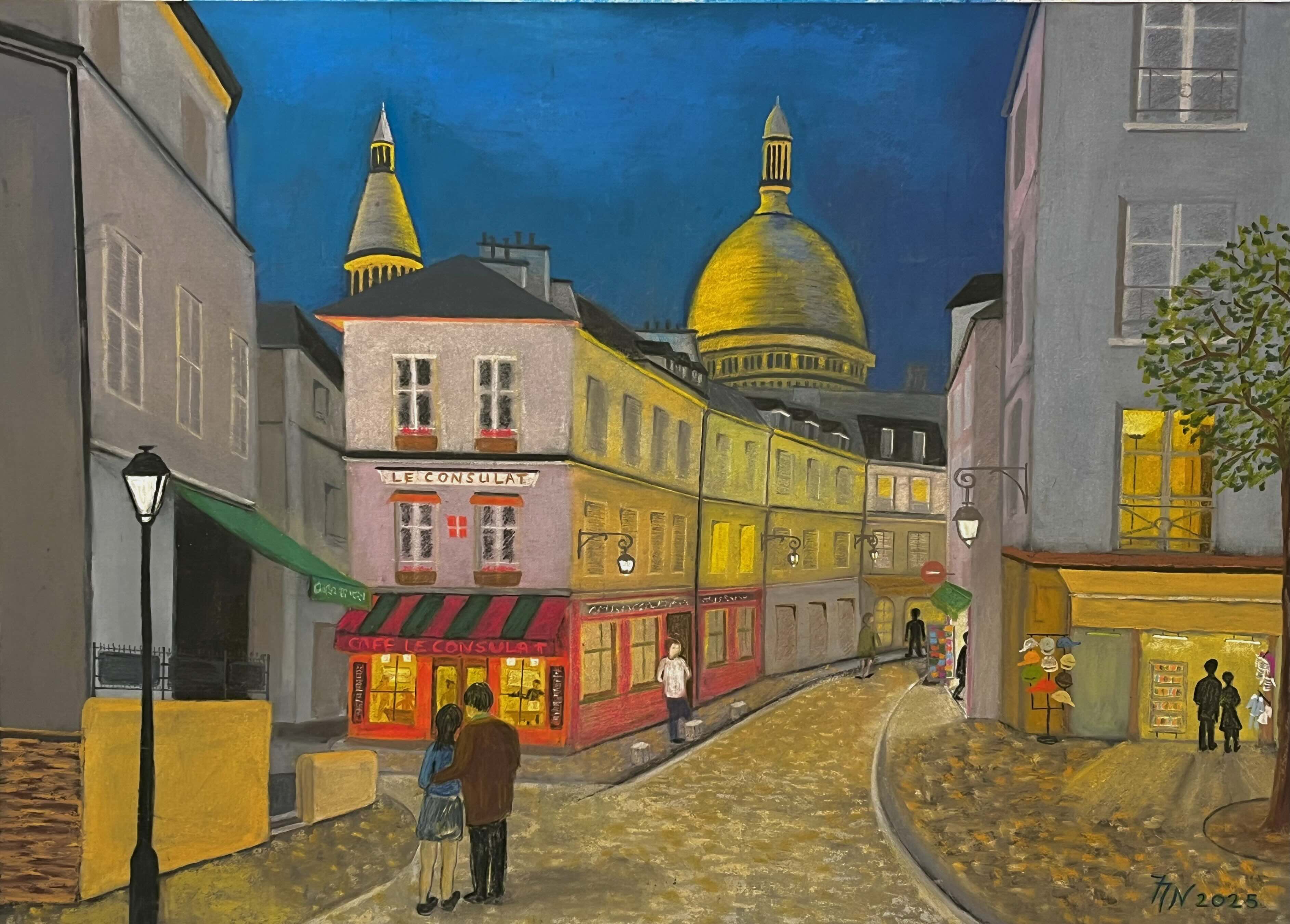 Montmartre, la nuit - Pastel sec sur canson touch -2025